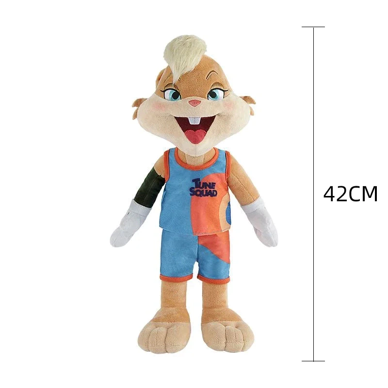 • Tamanho: Pernalonga 42cm, Lola 42cm, Piu-Piu 35cm e LeBron 40cm